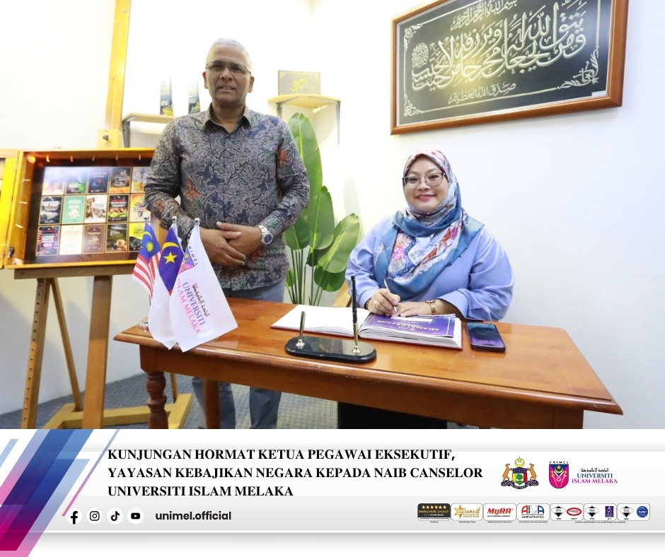 Putrajaya, 13 Januari 2026 β Naib Canselor Universiti Islam Melaka (UNIMEL), Profesor Datuk Ts. Dr. Abdul Khalil bin Shawkataly, telah mengadakan kunjungan hormat ke atas Ketua Pengarah Jabatan Perkhidmatan Awam Malaysia, Tan Sri Wan Ahmad Dahlan bin Abdul Aziz, sebagai usaha memperkukuh jalinan strategik antara institusi pendidikan tinggi dan perkhidmatan awam negara.