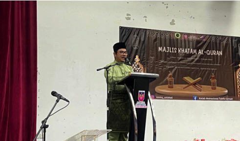 “Program Khatam Al-Quran” yang dianjurkan oleh Kelab Mahasiswa Tahfiz wal Qiraat (Diploma Tahfiz Al-Quran wal Qiraat) yang bertempat di Auditorium Ibnu Khaldun, Universiti Islam Melaka pada 24 Januari 2025 (Jumaat) adalah bertujuan untuk meraikan para pelajar yang telah mengkhatamkan al-Quran 30 juz. Di samping itu, majlis ini turut menjemput Tn. Hj. Zulkefli bin Abu Bakar (Timbalan Naib Canselor, Universiti Islam Melaka), dekan FKI iaitu Dr. Rahisam bin Ramli, para pensyarah DTQ serta para pelajar dan ibu bapa.